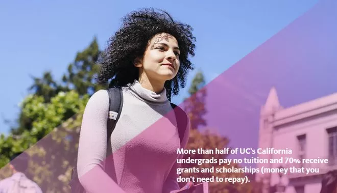 UC的官网显示,就本科而言,超过半数(55%)的加州本地生没有支付过学费,70%获得了未来无需还款的补助和奖学金。