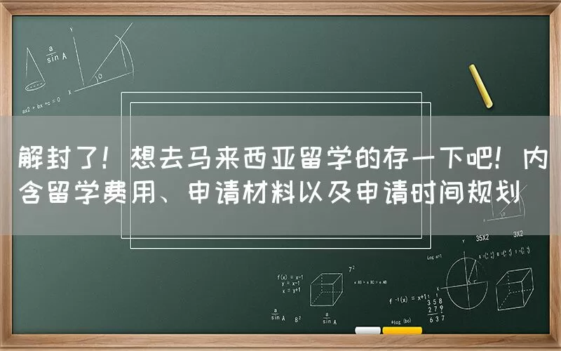 解封了!想去马来西亚留学的存一下吧!内含留学费用、申请材料以及申请时间规划
