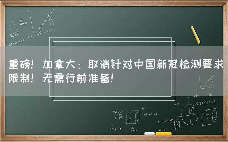 重磅!加拿大:取消针对中国新冠检测要求限制!无需行前准备!
