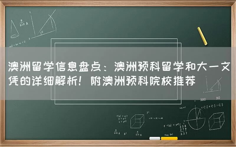 澳洲留学信息盘点:澳洲预科留学和大一文凭的详细解析!附澳洲预科院校推荐