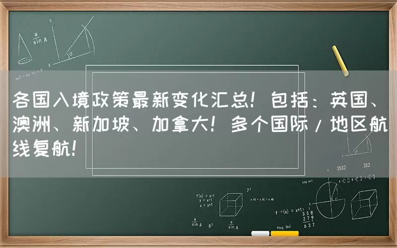各国入境政策最新变化汇总!包括:英国、澳洲、新加坡、加拿大!多个国际/地区航线复航!