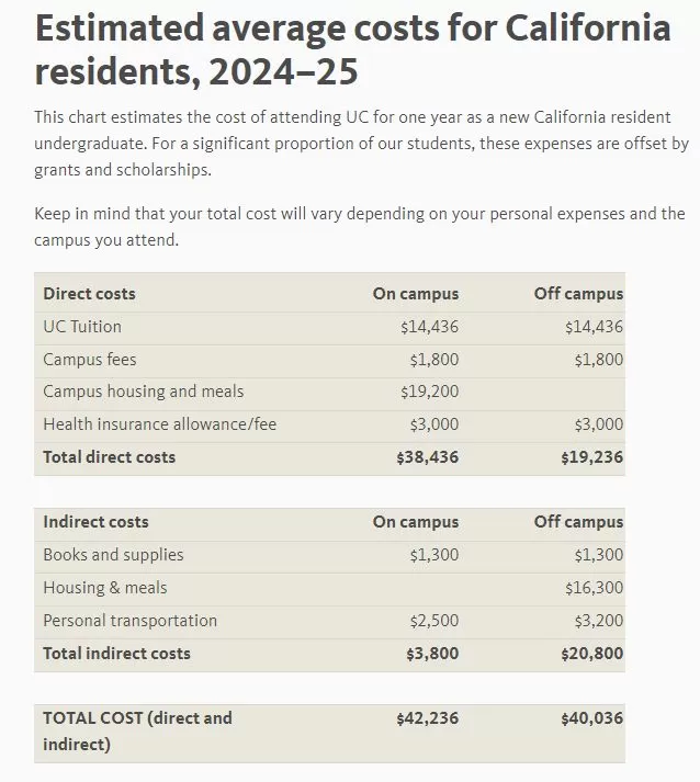 UC的官网显示,就本科而言,超过半数(55%)的加州本地生没有支付过学费,70%获得了未来无需还款的补助和奖学金。