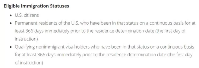 还是以加州大学伯克利分校为例,对“本地人”的认定很关键的一点是之前366天连续居住在加利福利亚,且身份符合以下条件之一: