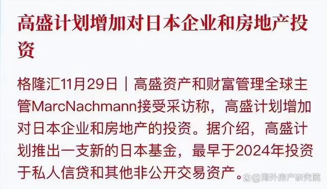格隆汇11月29日高盛资产和财富管理全球主管MarcNachmann接受采访称,高盛计划增加对日本企业和房地产的投资。据介绍,高盛计划推出一支新的日本基金,最早于2024年投资于私人信贷和其他非公开交易资产。