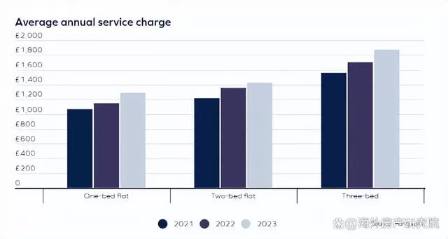 近三年英国公寓的物业费用也因物价水平上涨而相应增加,通常来说,一栋住宅如果提供更多的服务,如礼宾服务、健身休闲设施、景观花园和屋顶露台等,物业费相应也会更高。