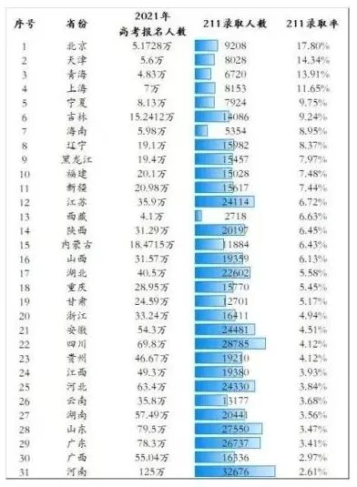 广东省211录取率是3.41%,全国倒数被大家称为地狱模式。